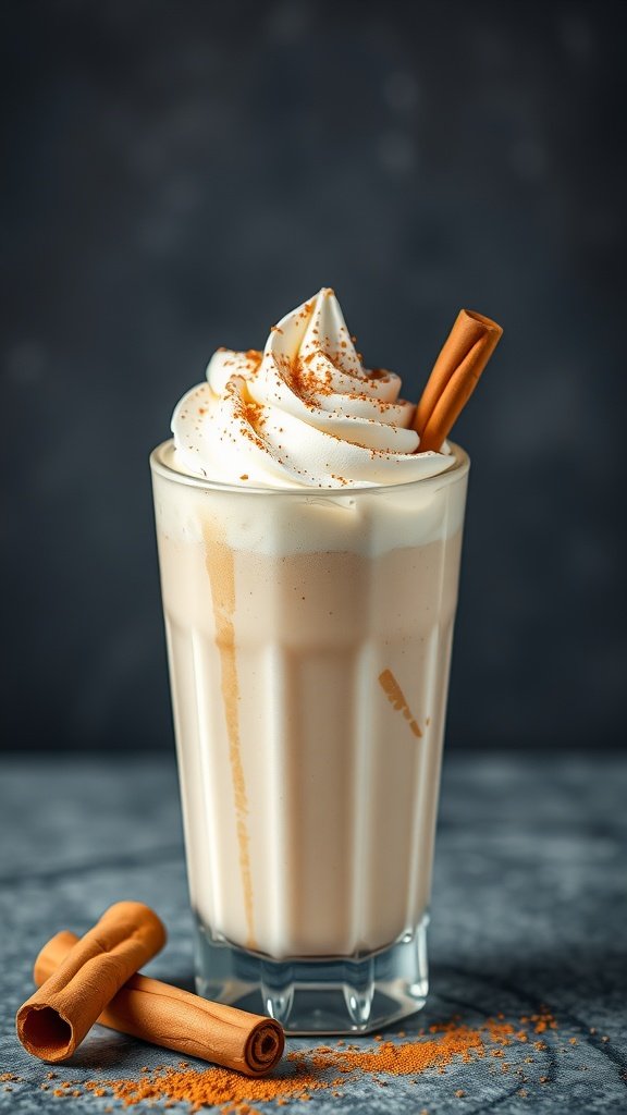 - Pour into a glass and sprinkle with a little extra cinnamon on top, if desired.