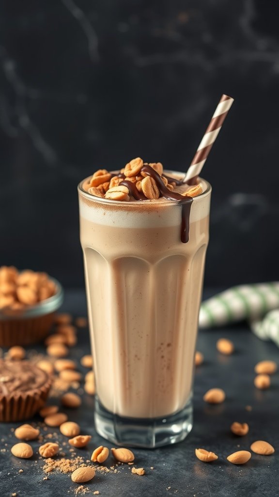 - Serve: Pour the shake into a glass and drizzle with chocolate syrup on top. Sprinkle chopped peanuts for added crunch.