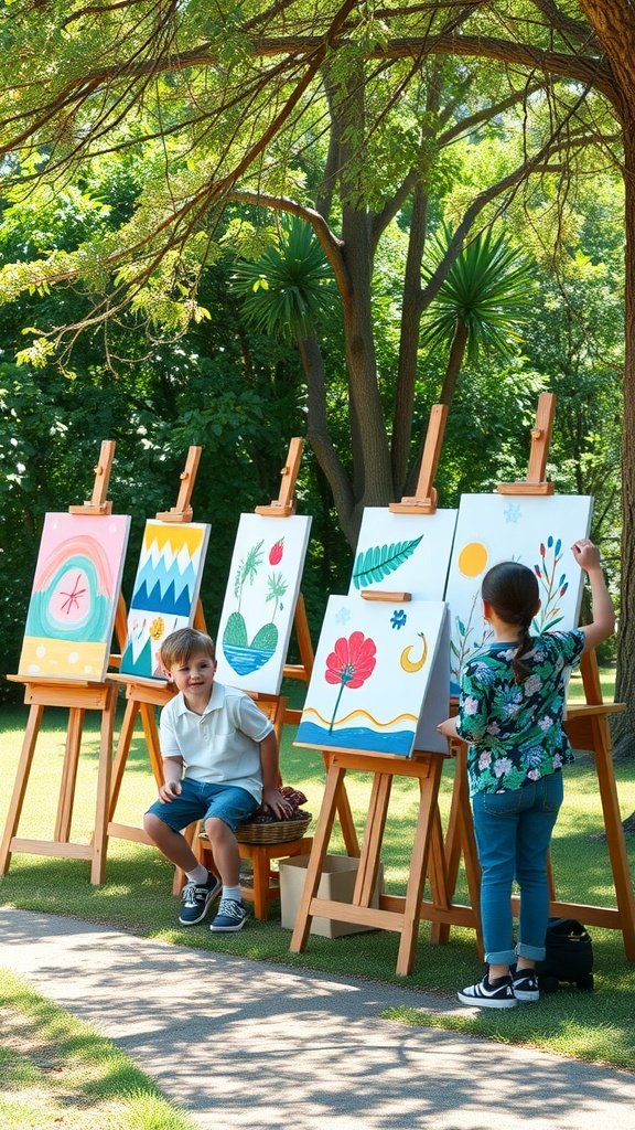 Imagine a setup with easels, paints, and lots of colorful supplies. Kids can paint landscapes, flowers, or anything their hearts desire. This activity not only keeps them engaged but also boosts their fine motor skills and creativity.