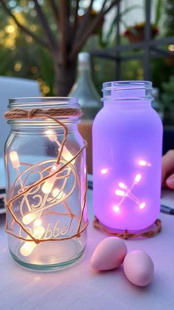 For this Dollar Tree Easter crafts DIY, you can create lanterns that reflect the spirit of the season. Adding fairy lights inside the jars enhances the ambiance, making them beautiful decorations for Easter brunch or evening celebrations.