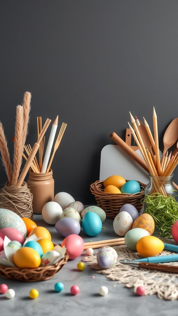 - Decorate the Eggs – If desired, paint plastic eggs, add glitter, or wrap them in twine for a farmhouse look.