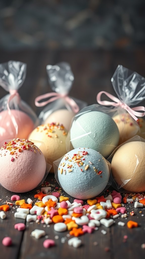 You can create bath bombs using simple materials from the Dollar Tree, making this a budget-friendly DIY project. The cute decorations and bright colors invite a sense of joy and relaxation.