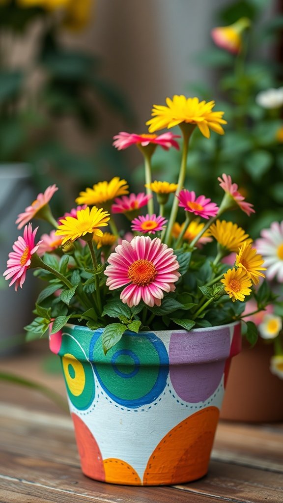 Flower Pot with Hand-Painted Design