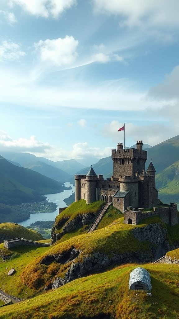 When you think of beautiful places to travel, Scotland’s enchanting castles surely come to mind. Nestled in stunning landscapes, these castles tell stories of history, royalty, and intrigue. The image captures one such castle, proudly standing atop a hill, surrounded by rolling green hills and dramatic skies. Its unique architecture and strategic position evoke a sense of adventure.