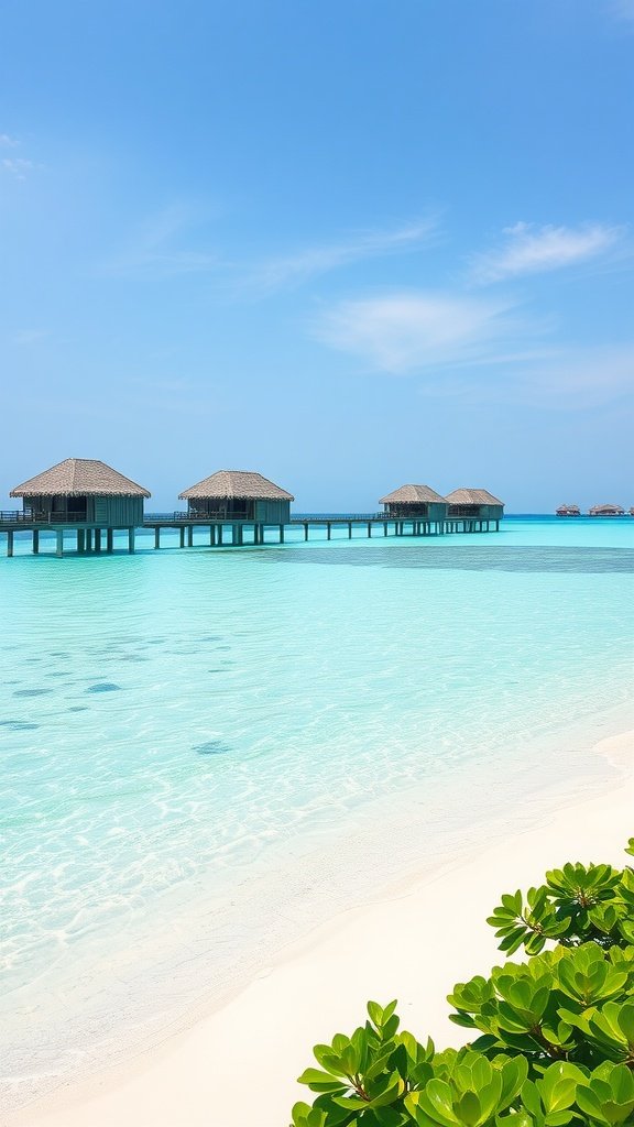 The Maldives is a dream destination for anyone seeking beautiful places to travel. Picture soft, white sand beaches lined with cozy cabanas, all set against a backdrop of turquoise waters. This image perfectly captures that essence, showing how serene and inviting these beaches can be.