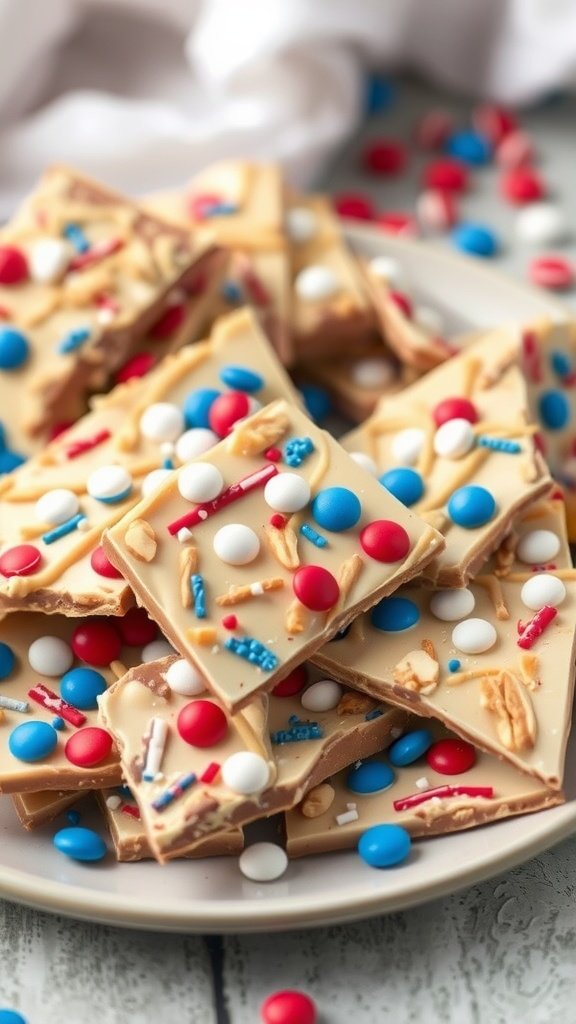 This festive bark features bright red, white, and blue toppings, making it visually appealing for your holiday festivities. It’s easy to make and even easier to enjoy!