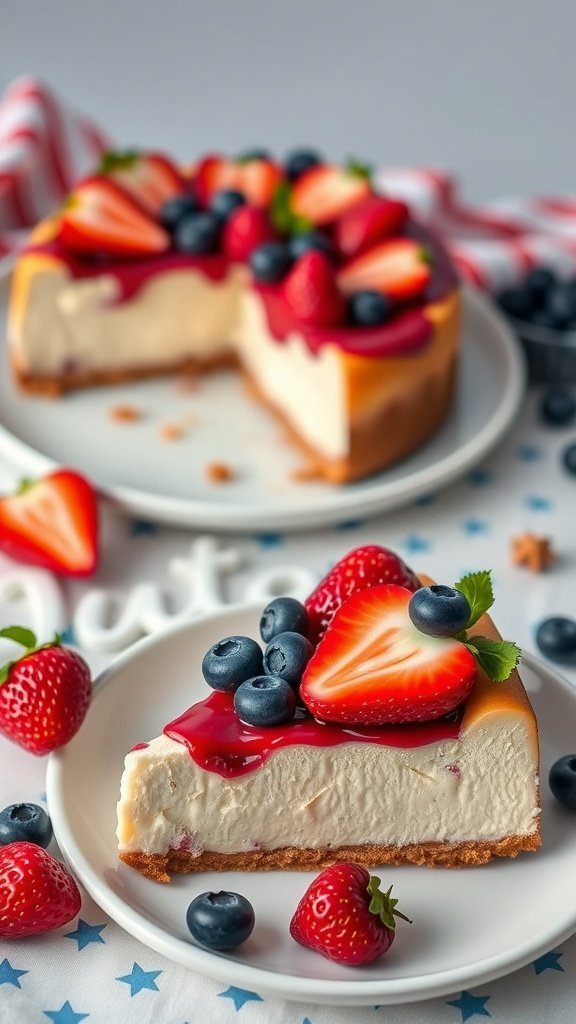 This Berry-Infused Keto Cheesecake is a delightful treat perfect for Fourth of July low carb desserts. It features a creamy, rich filling topped with fresh strawberries and blueberries, making it not only tasty but also festive. The vibrant colors of the berries shine against the smooth cheesecake, creating a beautiful presentation that will impress your guests.