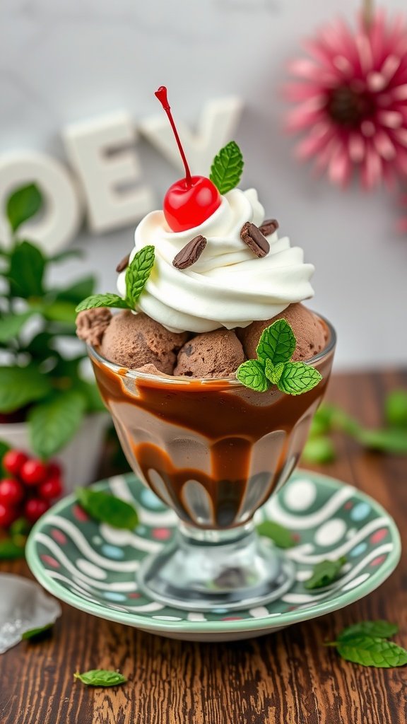 Chocolate Mint Ice Cream Sundae