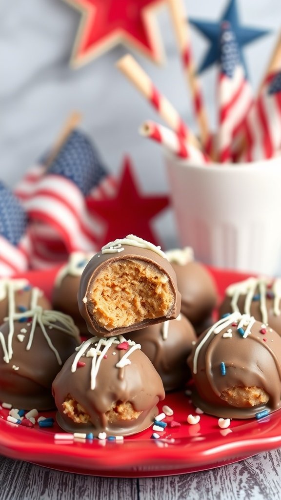 Imagine a plate full of these rich and creamy bites, coated in smooth chocolate and drizzled with white chocolate. They invite you to take a bite, revealing a soft, peanut butter center. Since they are low in carbs, they fit perfectly into a low-carb lifestyle, making them ideal for your Fourth of July gathering.