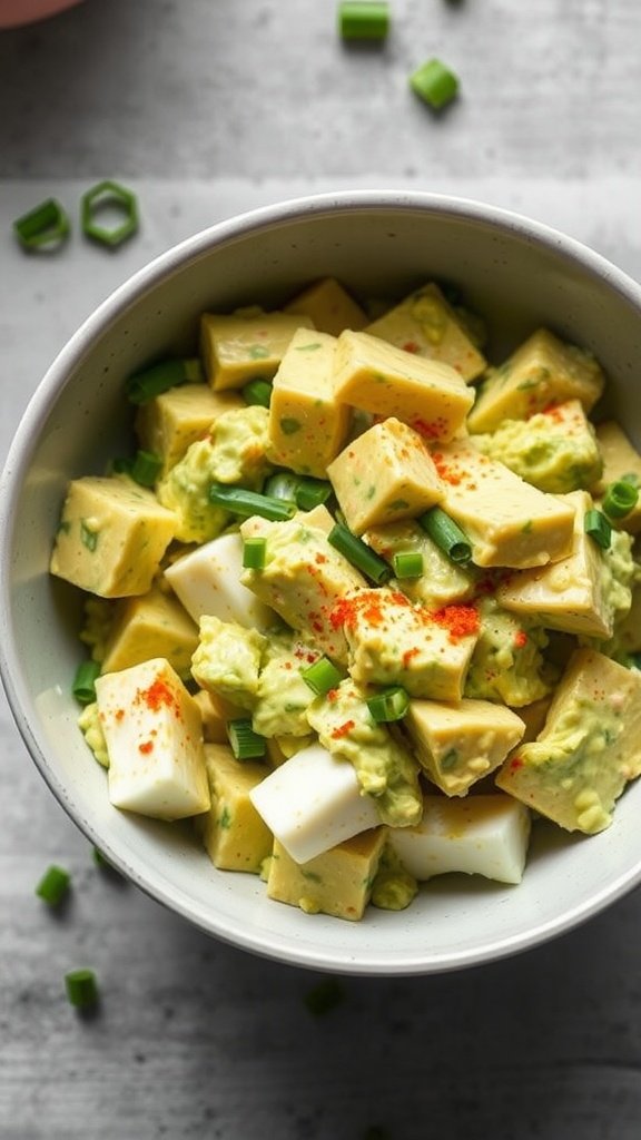 The creamy texture of the avocado pairs beautifully with the hard-boiled eggs. Toss in some chopped green onions for extra flavor, and a sprinkle of paprika adds a nice touch. This dish is simple, colorful, and full of nutrients.