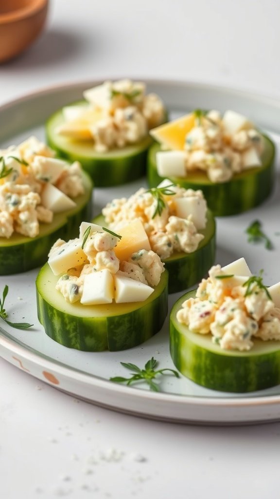 To make these bites, you simply need cucumbers and a tasty egg salad filling. The cucumber slices serve as a crisp base, making each bite light and satisfying. Not only do they fit perfectly into a keto diet, but they also look great on any plate!