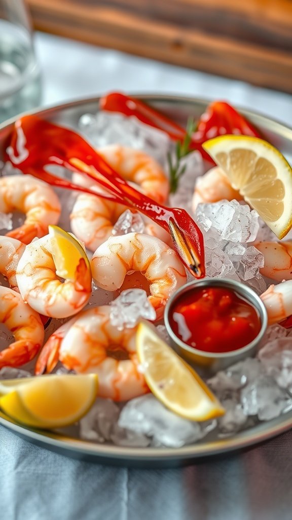 The shrimp is served on a bed of ice, keeping it fresh and cool. Juicy lemon wedges add a refreshing touch, while a zesty cocktail sauce is the perfect dip to elevate the flavors. This combination is both simple and satisfying, making it an ideal appetizer for your holiday gathering.