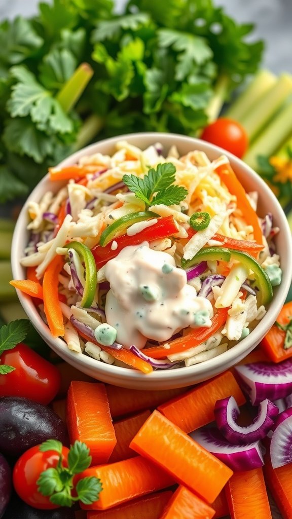 The dip is made with simple ingredients. Greek yogurt is a great base, offering protein without the carbs. Fresh herbs add a burst of flavor that enhances the overall taste. Serve it with a variety of crunchy vegetables like bell peppers, cucumbers, and cherry tomatoes for a fun, healthy snack.