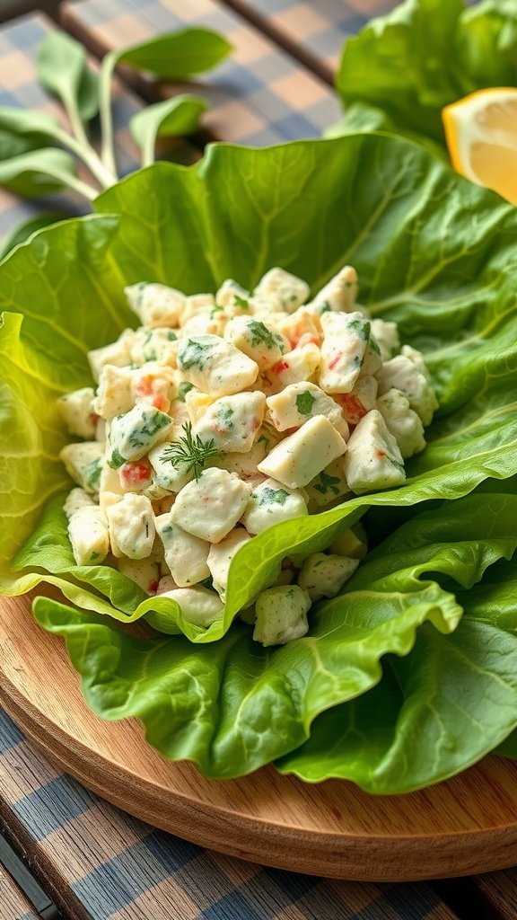 The wraps feature tender chicken mixed with creamy ranch dressing, crunchy veggies, and fresh herbs, all served in crisp lettuce leaves. They not only look inviting but also offer a burst of flavor in every bite.