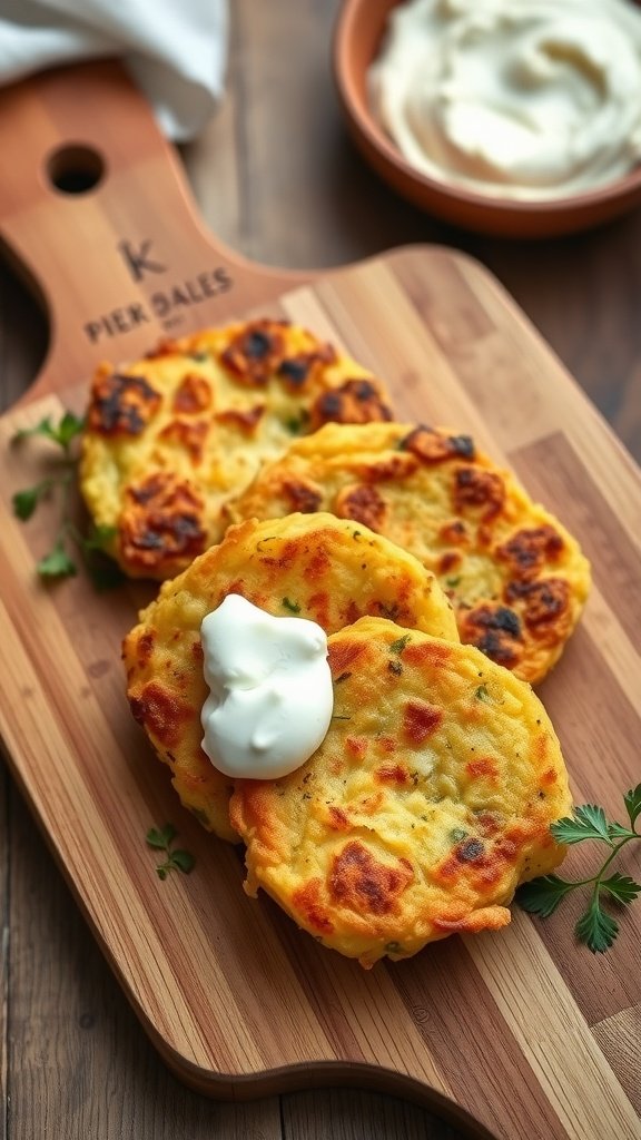 The fritters are golden and crispy on the outside, with a tender interior. Topping them with a dollop of sour cream adds a creamy richness that complements the flavors beautifully. These little bites are great as appetizers or as a side dish for your holiday barbecue.