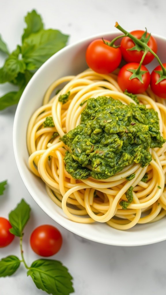 This dish combines spiralized zucchini, which gives a fun noodle-like texture, with a rich and vibrant pesto. The fresh basil and garlic in the pesto pack a punch, while the zucchini keeps the meal healthy and low in carbs. Plus, it’s super easy to whip up!