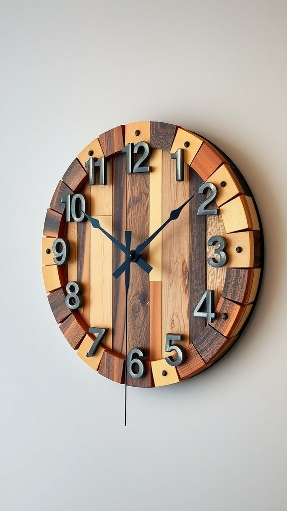 Start by cutting different pieces of wood into strips and gluing them together to form the clock face. Don’t forget to add clock hands and a mechanism; you can often find these in craft stores or online!