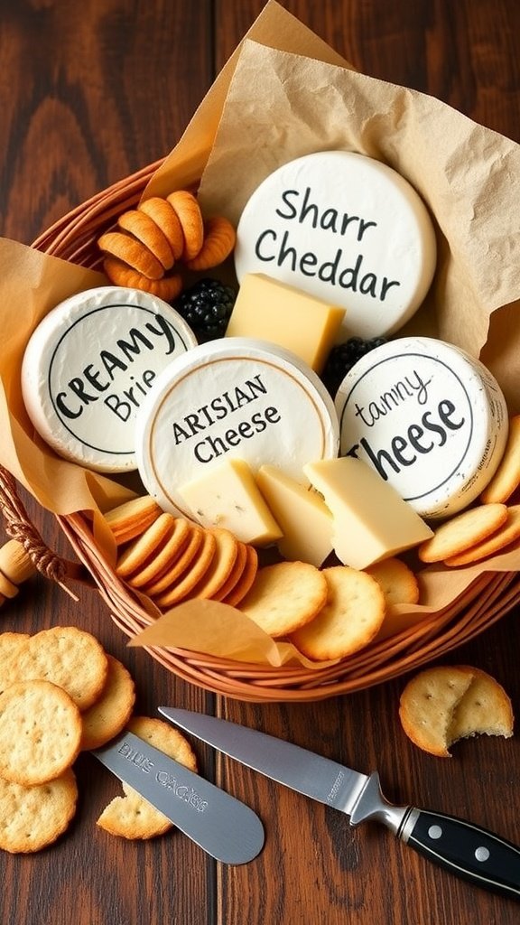 Creating an artisan cheese and crackers basket is one of those adult Easter basket ideas that truly stands out. It’s a delightful way to combine savory flavors with a touch of elegance. Choose a selection of cheeses, like a creamy Brie, sharp Cheddar, or a tangy blue cheese. Pair these with a variety of crackers—think everything from classic water crackers to more adventurous herb-infused varieties.