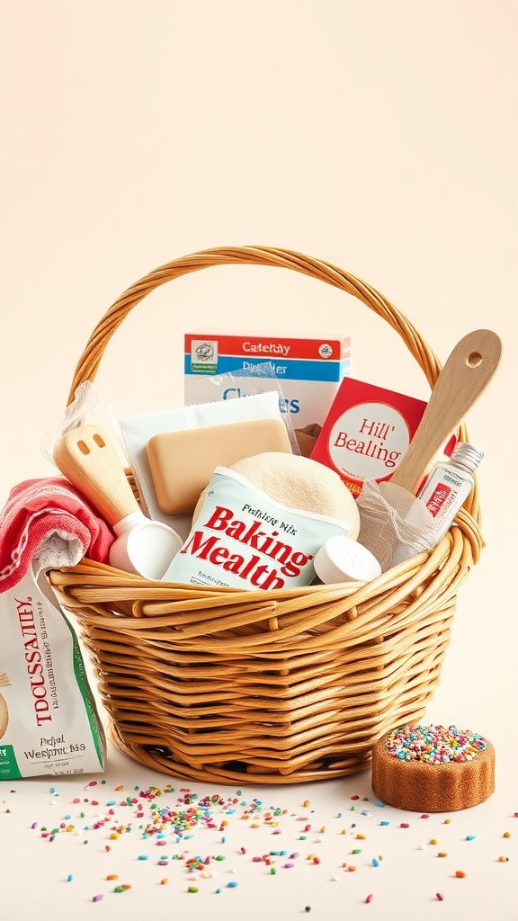 When thinking about unique Easter basket ideas for adults, a baking-themed basket can really stand out. This basket is filled with essential baking items that anyone who enjoys spending time in the kitchen would appreciate. Imagine a cozy afternoon spent whipping up some delightful treats.