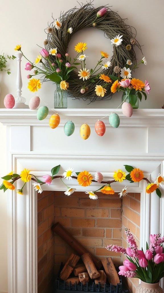 The bright colors of the eggs, along with the vibrant flowers nearby, add a sense of joy and celebration. Whether you place them on a mantel, a door frame, or even as part of a table centerpiece, these garlands are sure to catch the eye and elicit smiles.