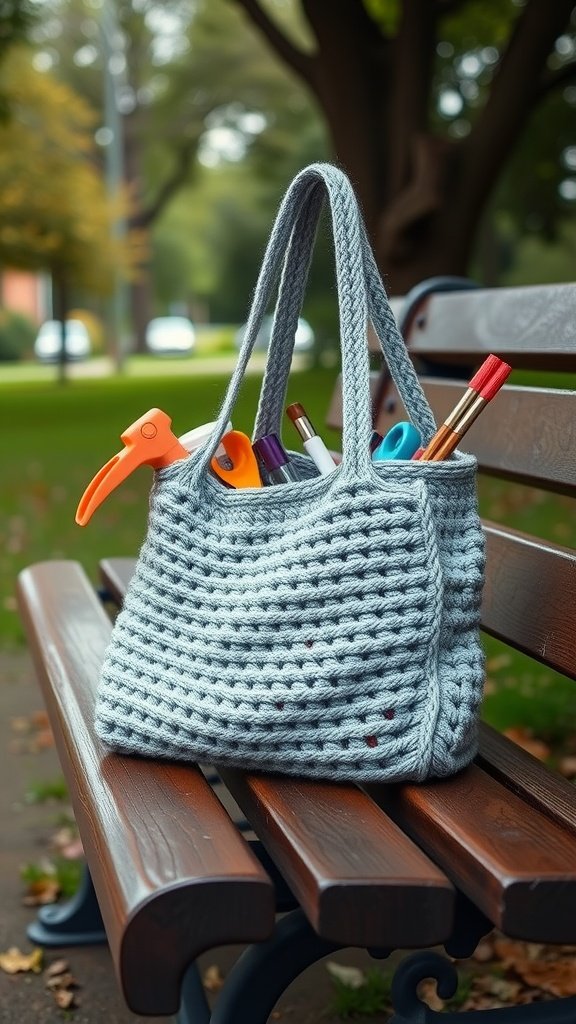 This bag is perfect for carrying your essentials, whether you’re heading to a craft session or a day out. It looks cozy and has enough space to hold items like pens, notebooks, or even snacks!