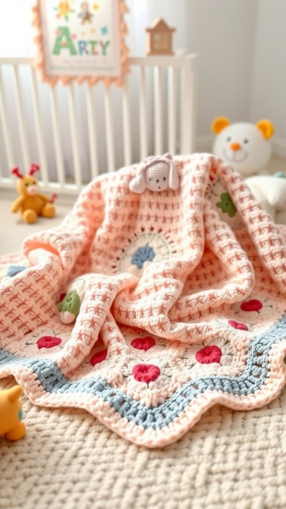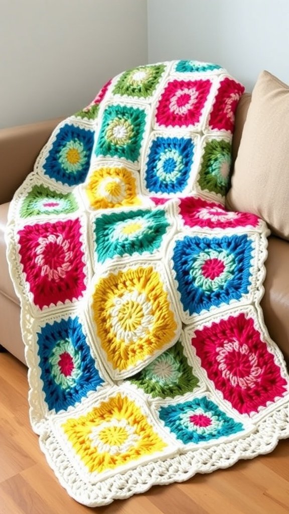 Creating a cozy baby blanket is a delightful way to practice easy crochet. This lovely blanket features cheerful colors and cute motifs, perfect for keeping little ones warm and snug.