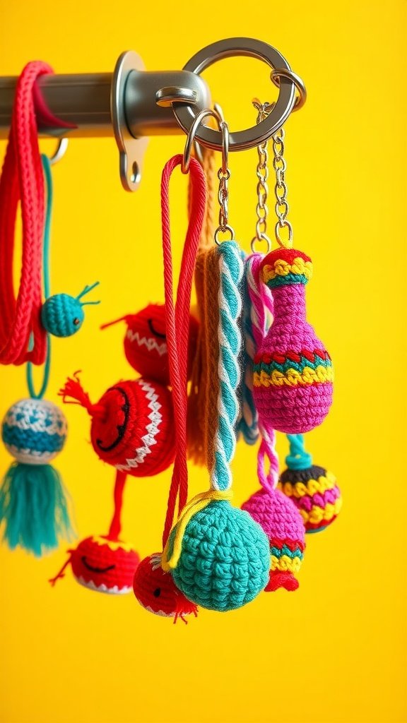Crochet keychains are a delightful way to add a personal touch to your everyday items. The bright colors and playful designs shown in the image above highlight the fun possibilities of this easy crochet project. Each keychain is unique, making them perfect as gifts or for keeping your own keys organized.