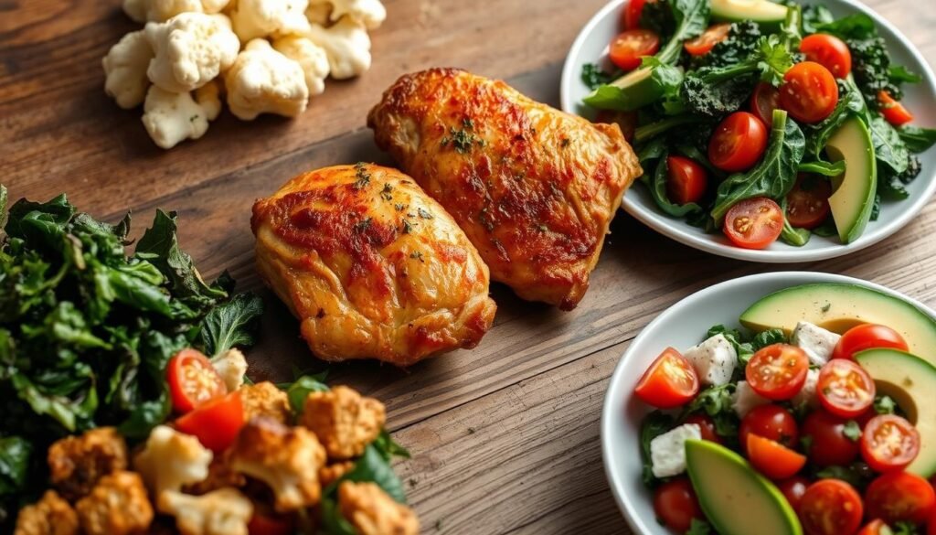 Make your crispy baked chicken thighs even better with tasty low carb sides. These sides will turn your meal into a healthy and fulfilling experience. Choosing the right keto-friendly pairings is key to a balanced and tasty dinner.