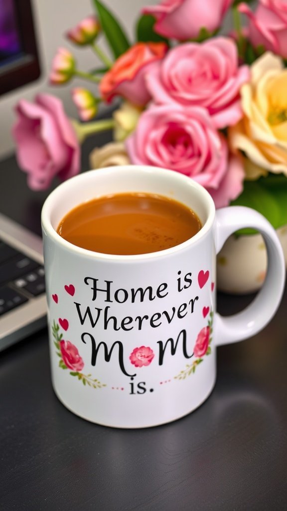 In the image, we see a cheerful mug with a handwritten message, surrounded by lovely flowers. This creates a warm, inviting scene. Whether it says ‘Happy Birthday, Mom!’ or ‘You’re the Best!’, a personal touch makes it even more special.
