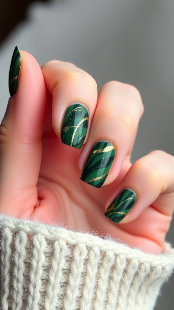For a DIY approach, consider using nail polish in varying shades of green and gold. You can create the marble effect with a simple water marbling technique or by using a thin brush to swirl the colors together. It’s a fun project that allows for creativity!