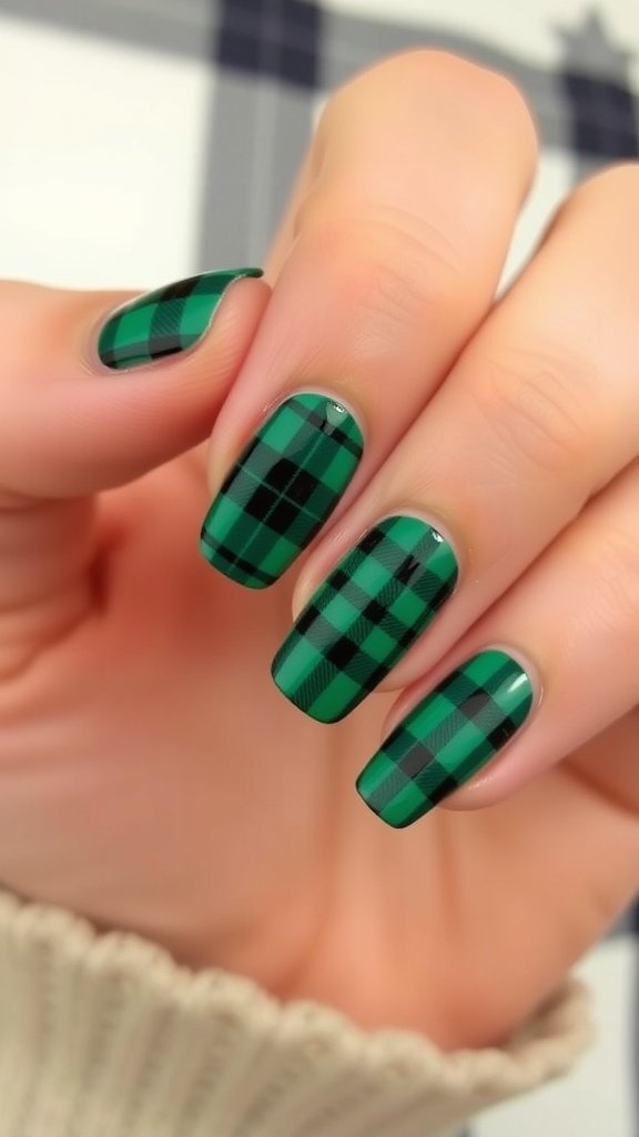 The tartan pattern is not only visually appealing but also versatile. You can play with different shades of green or even add a touch of gold for some extra flair. This look can easily be achieved at home with a steady hand or by visiting your favorite nail salon.